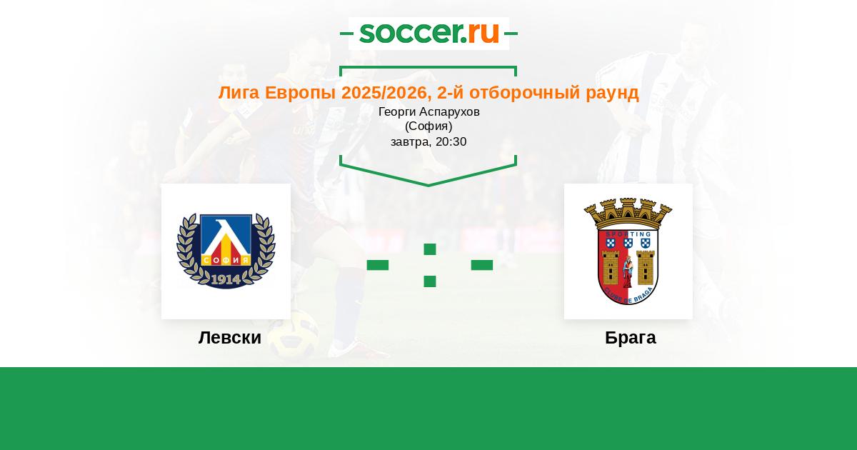 Протокол матча Левски против Брага