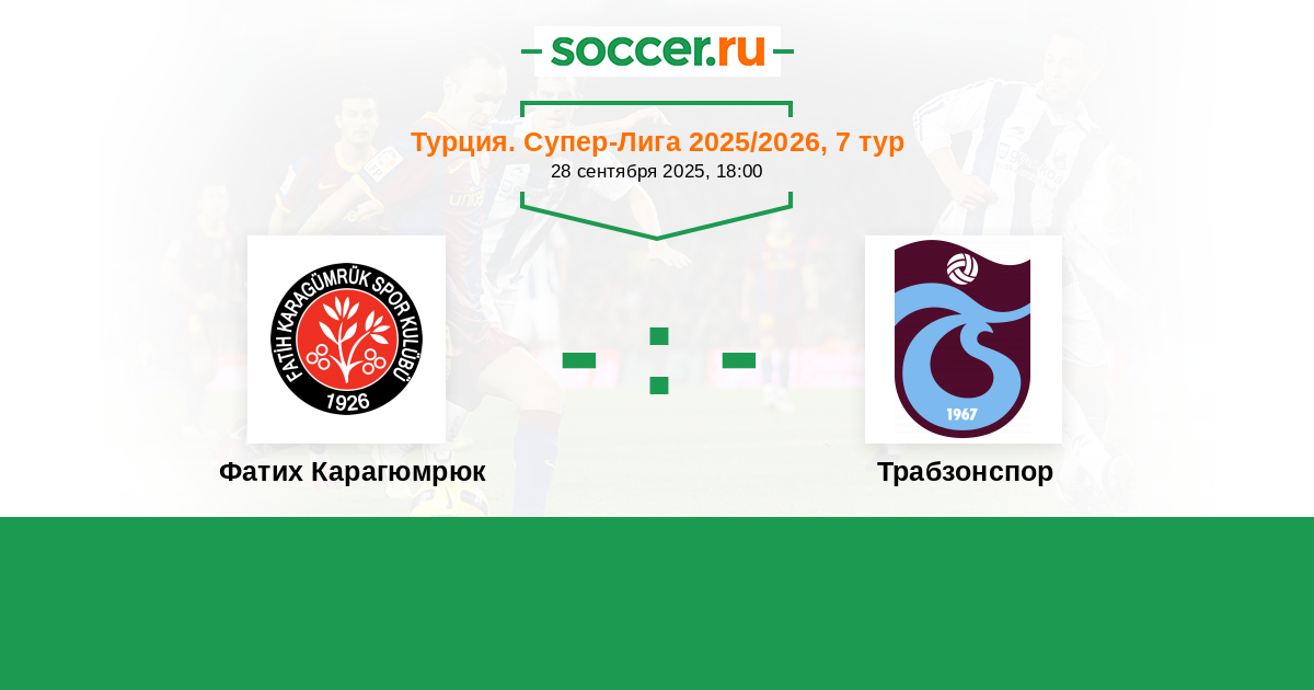 Протокол матча Фатих Карагюмрюк против Трабзонспор