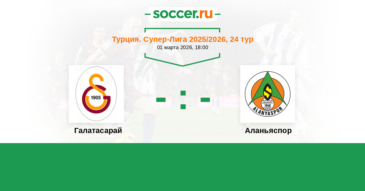 Турция. Суперлига 06.10.2024 Галатасарай Логотип футбольный клуб Галатасарай (Стамбул) 1:0 Логотип футбольный клуб Аланьяспор Аланьяспор