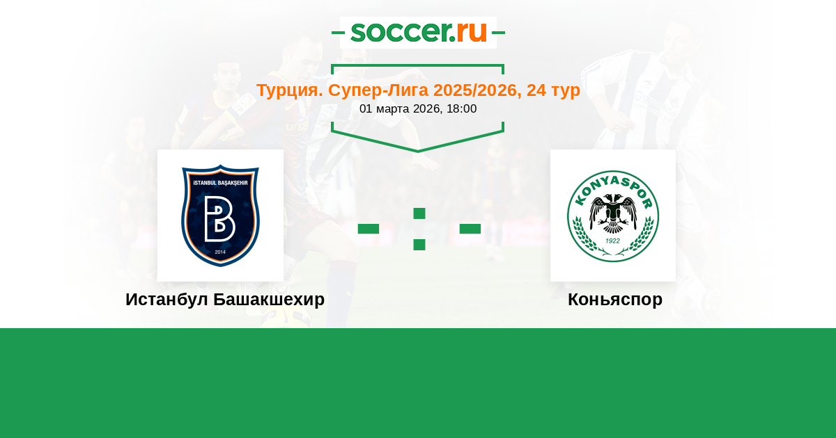 Турция. Суперлига 12.03.2017 Коньяспор Логотип футбольный клуб Коньяспор 0:3 Логотип футбольный клуб Истанбул Башакшехир (Стамбул) Истанбул Башакшехир