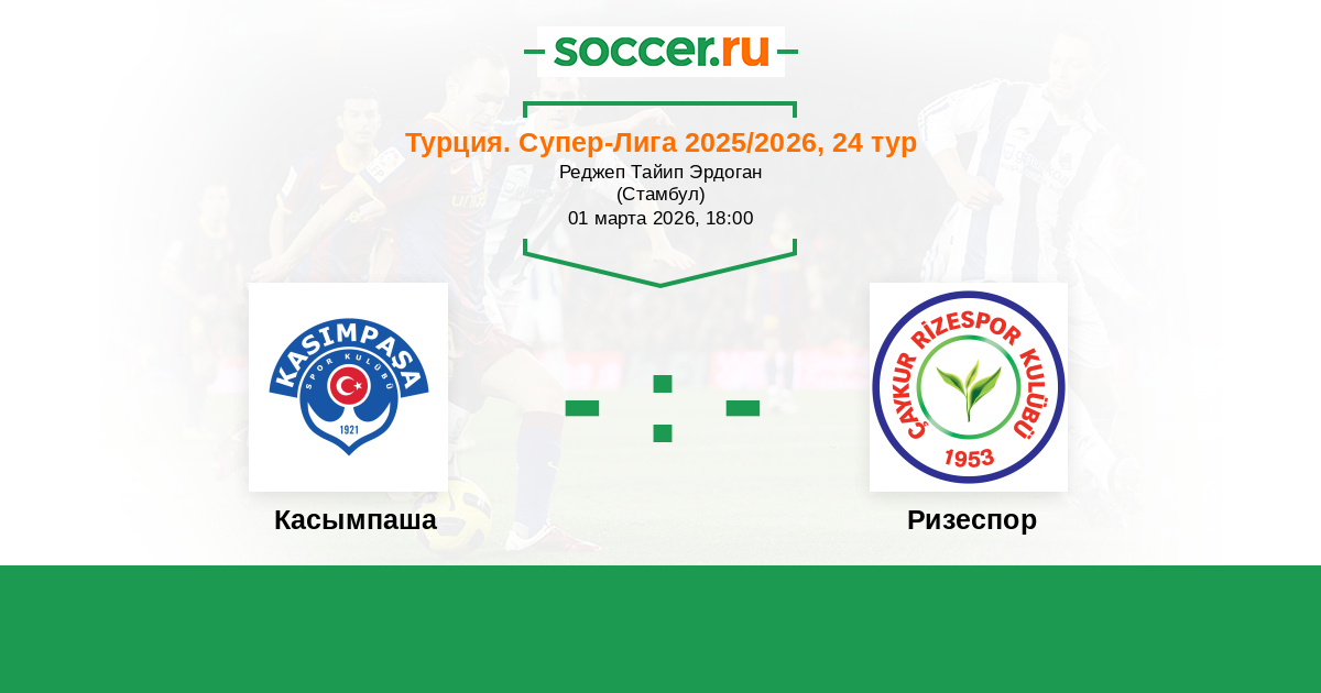 Турция. Суперлига 02.02.2021 Ризеспор Логотип футбольный клуб Ризеспор 1:1 Логотип футбольный клуб Касымпаша (Стамбул) Касымпаша