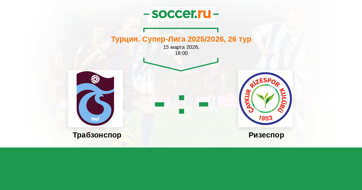 Турция. Суперлига 18.10.2025 Ризеспор Логотип футбольный клуб Ризеспор 1:2 Логотип футбольный клуб Трабзонспор Трабзонспор
