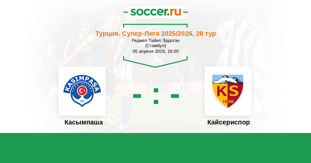 Турция. Суперлига 13.04.2025 Кайсериспор Логотип футбольный клуб Кайсериспор 1:0 Логотип футбольный клуб Касымпаша (Стамбул) Касымпаша