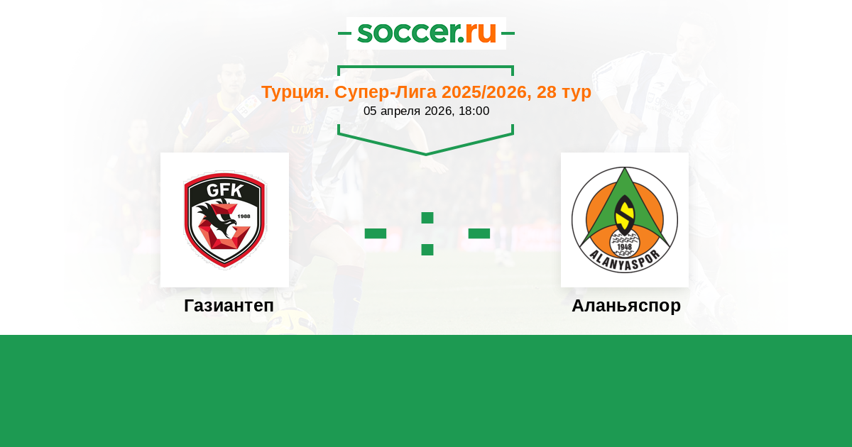 Турция. Суперлига 02.04.2024 Газиантеп Логотип футбольный клуб Газиантеп 0:3 Логотип футбольный клуб Аланьяспор Аланьяспор