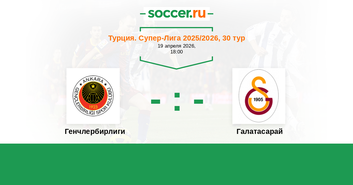 Турция. Суперлига 09.04.2018 Генчлербирлиги Логотип футбольный клуб Генчлербирлиги (Анкара) 1:0 Логотип футбольный клуб Галатасарай (Стамбул) Галатасарай