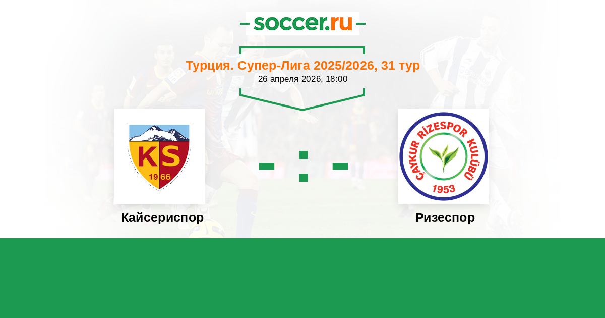 Турция. Суперлига 27.04.2025 Кайсериспор Логотип футбольный клуб Кайсериспор 1:0 Логотип футбольный клуб Ризеспор Ризеспор