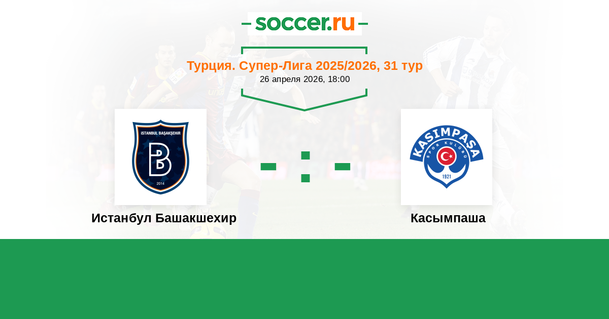 Турция. Суперлига 18.05.2025 Касымпаша Логотип футбольный клуб Касымпаша (Стамбул) 2:3 Логотип футбольный клуб Истанбул Башакшехир (Стамбул) Истанбул Башакшехир