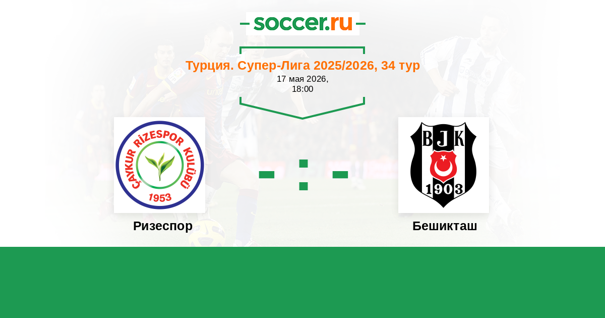 Турция. Суперлига 25.05.2025 Бешикташ Логотип футбольный клуб Бешикташ (Стамбул) 1:2 Логотип футбольный клуб Ризеспор Ризеспор