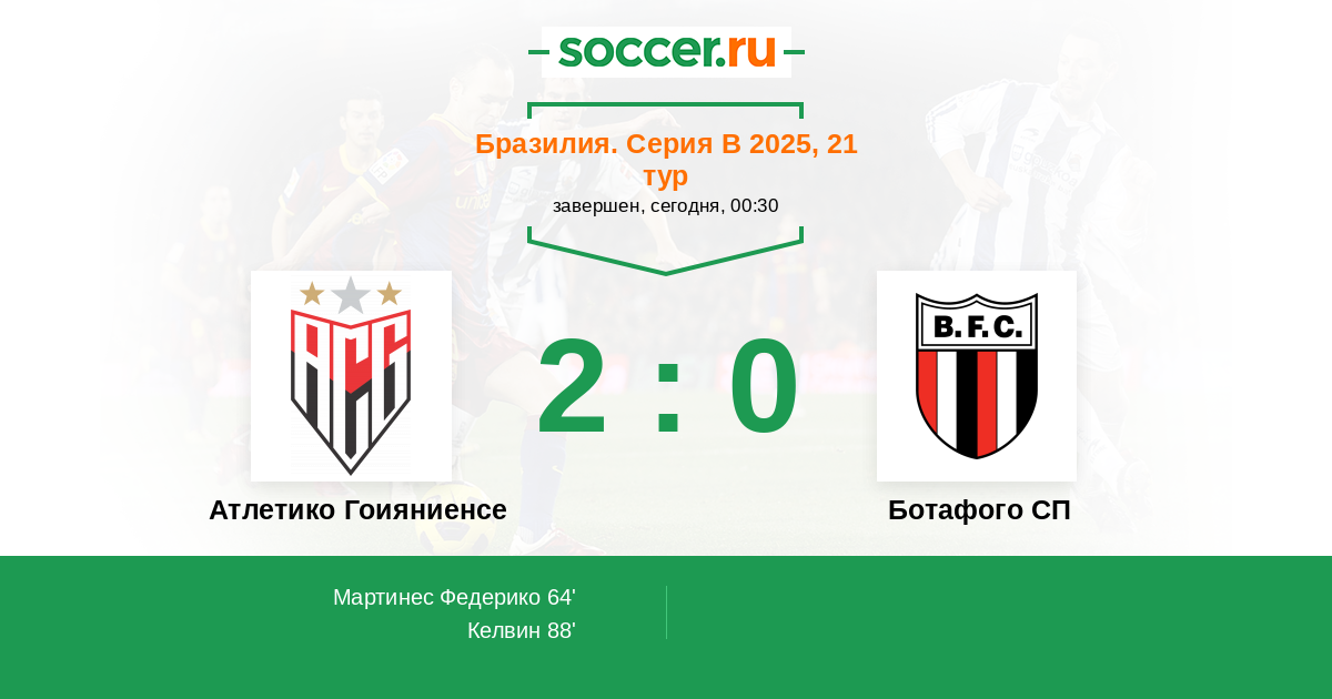 Протокол матча Атлетико Гоияниенсе против Ботафого СП