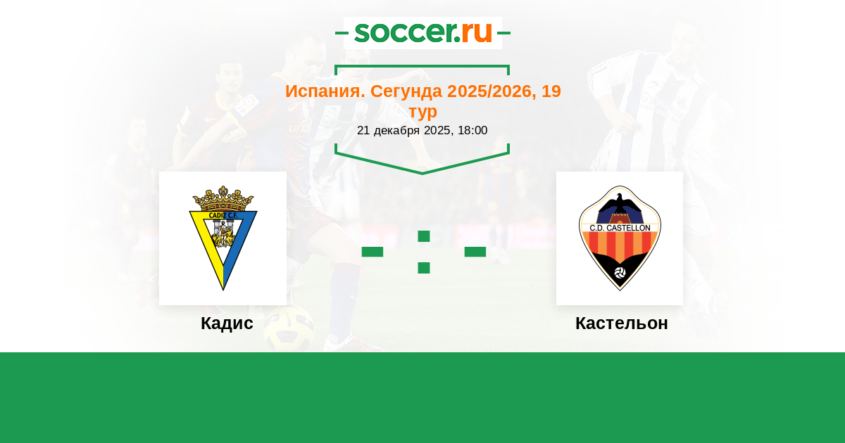 Кадис - Кастельон ! Обе команды находятся в хорошей спортивной форме и конечно же хотят по итогу сезона оказатся в секторе переходных игр . Предположу , что матч будет голевым .