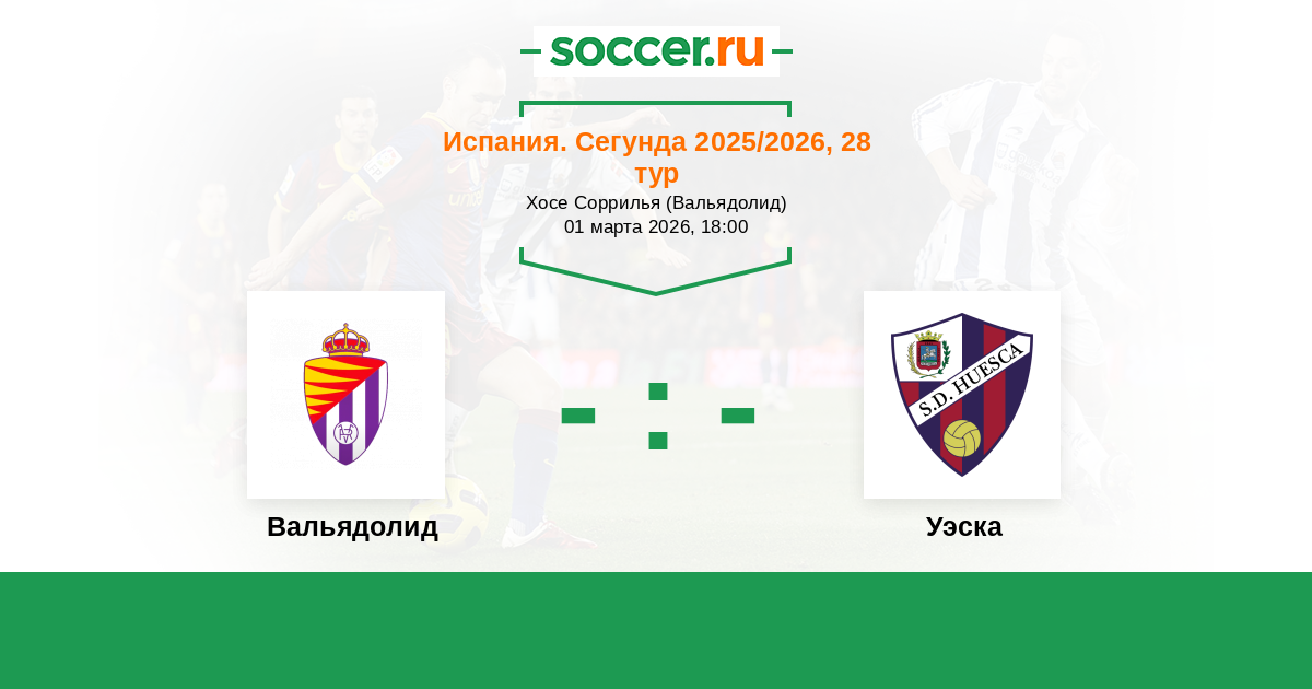Испания. Сегунда 16.02.2018 Вальядолид Логотип футбольный клуб Вальядолид 3:2 Логотип футбольный клуб Уэска Уэска