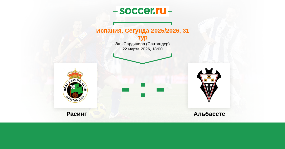 Испания. Сегунда 18.02.2024 Альбасете Логотип футбольный клуб Альбасете 2:0 Логотип футбольный клуб Расинг (Сантандер) Расинг
