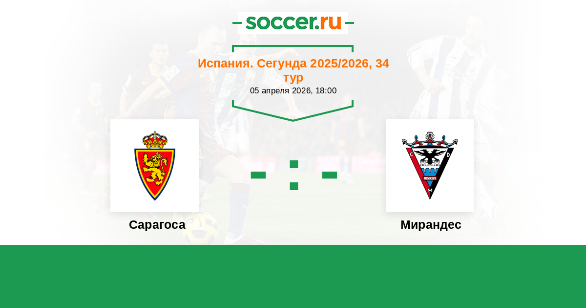 Испания. Сегунда 06.04.2025 Сарагоса Логотип футбольный клуб Сарагоса 1:0 Логотип футбольный клуб Мирандес (Миранда де Эбро) Мирандес