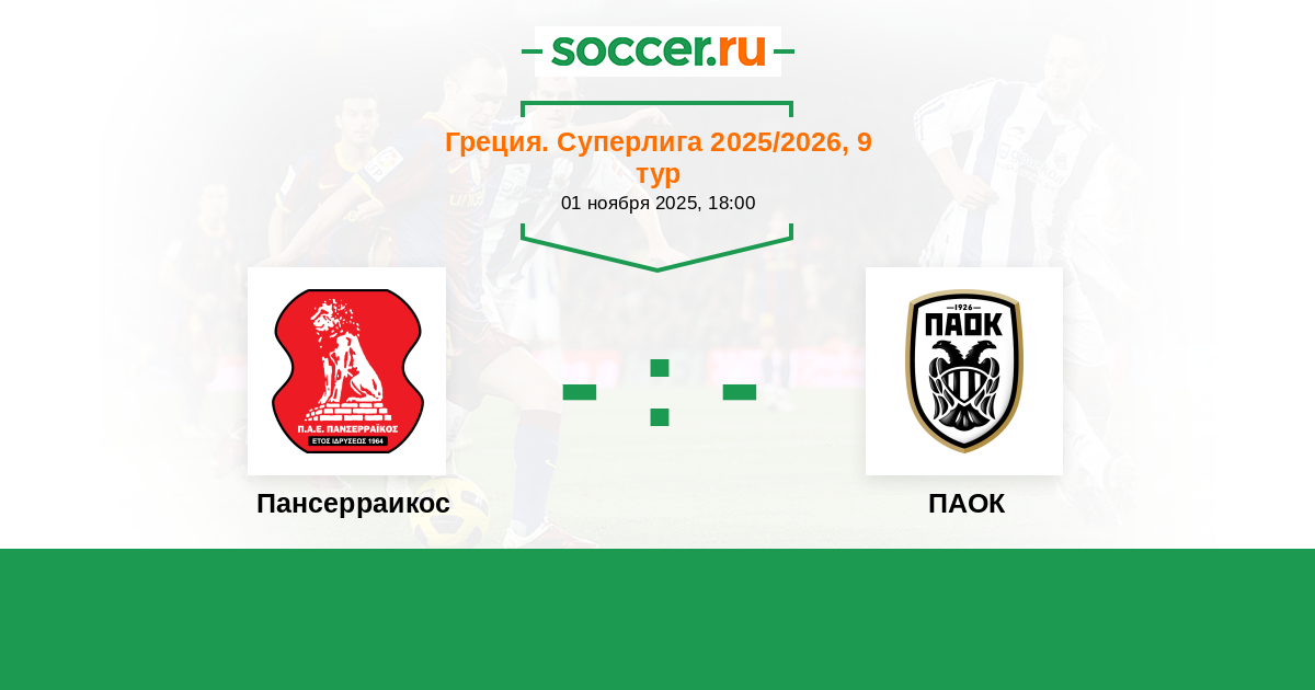 Протокол матча Пансерраикос против ПАОК