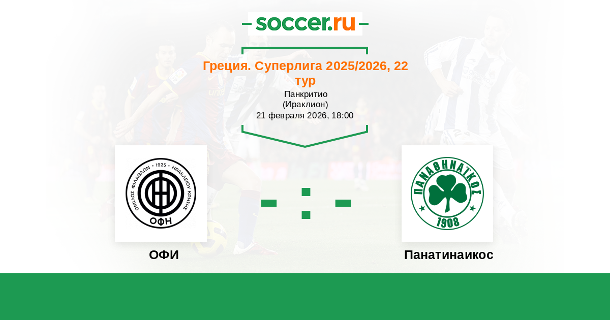 Греция. Суперлига 02.02.2022 ОФИ Логотип футбольный клуб ОФИ (Ираклион) 3:2 Логотип футбольный клуб Панатинаикос (Афины) Панатинаикос