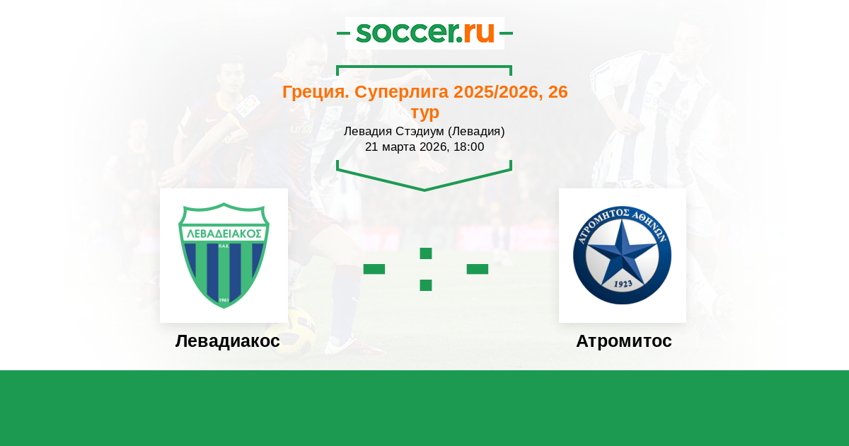 Греция. Суперлига 01.04.2023 Левадиакос Логотип футбольный клуб Левадиакос (Левадия) 1:1 Логотип футбольный клуб Атромитос (Перистери) Атромитос