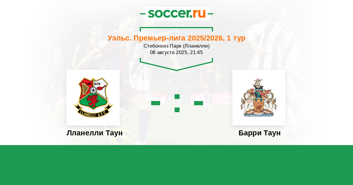 Протокол матча Лланелли Таун против Барри Таун