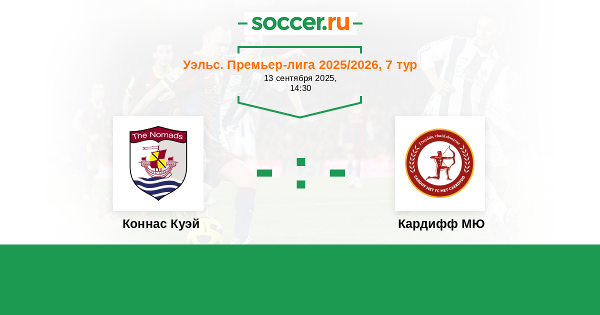 Протокол матча Коннас Куэй против Кардифф МЮ