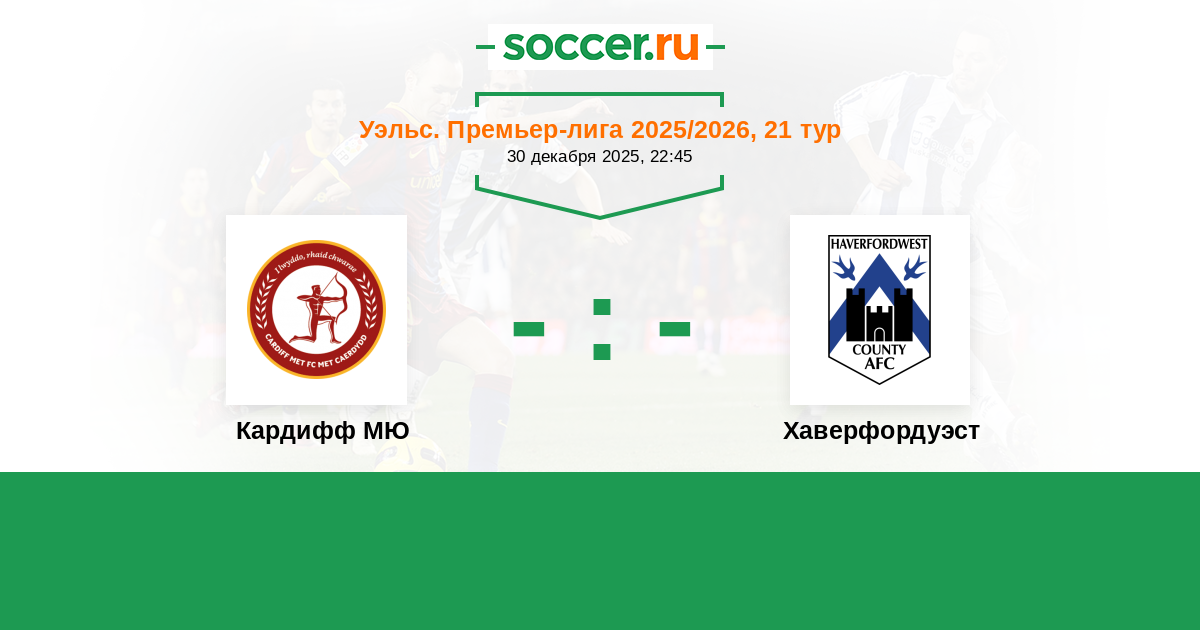 Протокол матча Кардифф МЮ против Хаверфордуэст