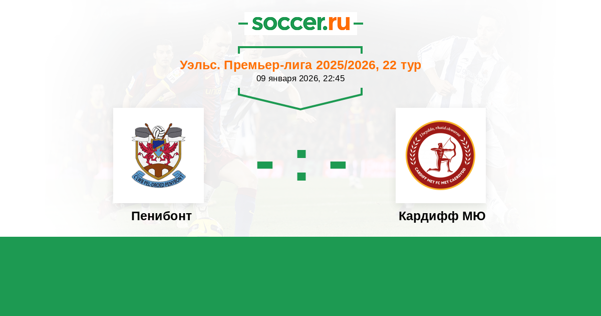 Уэльс. Премьер-Лига 30.12.2022 Кардифф МЮ Логотип футбольный клуб Кардифф МЮ 0:0 Логотип футбольный клуб Пенибонт (Бридгенд) Пенибонт