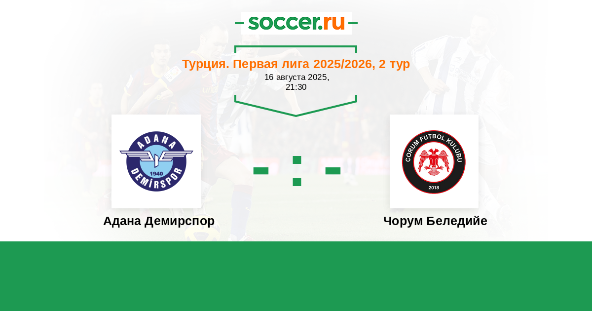 Протокол матча Адана Демирспор против Чорум Беледийе