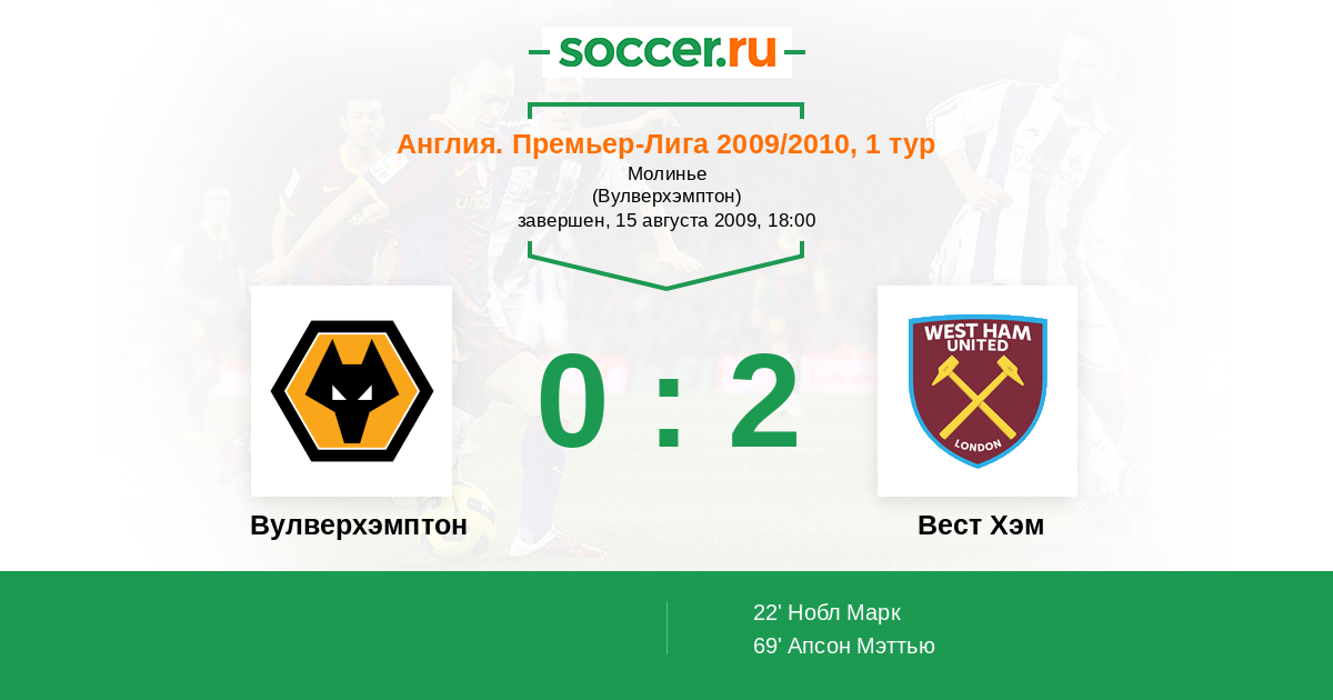69' (0:2) Апсон Мэттью (15) (Нобл Марк (16))