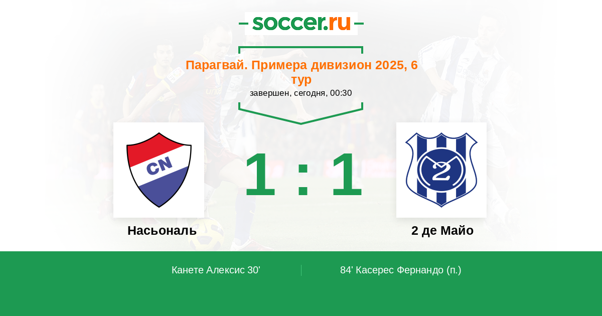 Протокол матча Насьональ против 2 де Майо