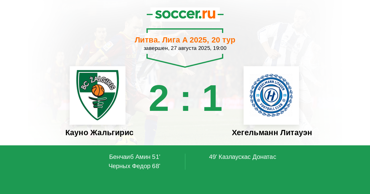 Протокол матча Кауно Жальгирис против Хегельманн Литауэн