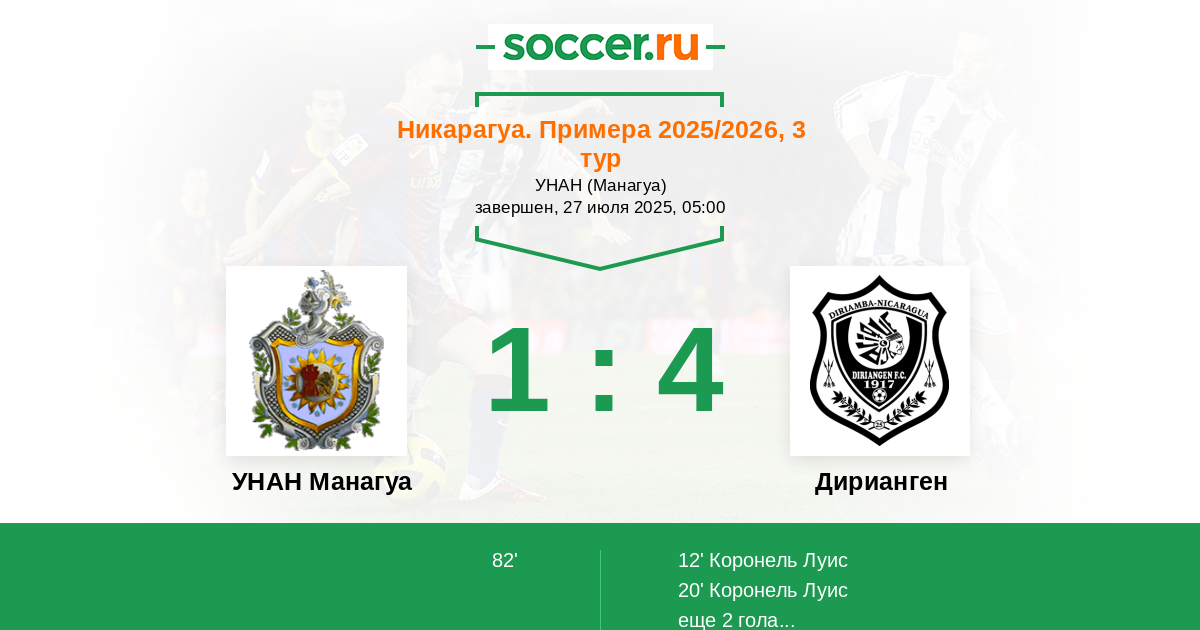 Протокол матча УНАН Манагуа против Дирианген