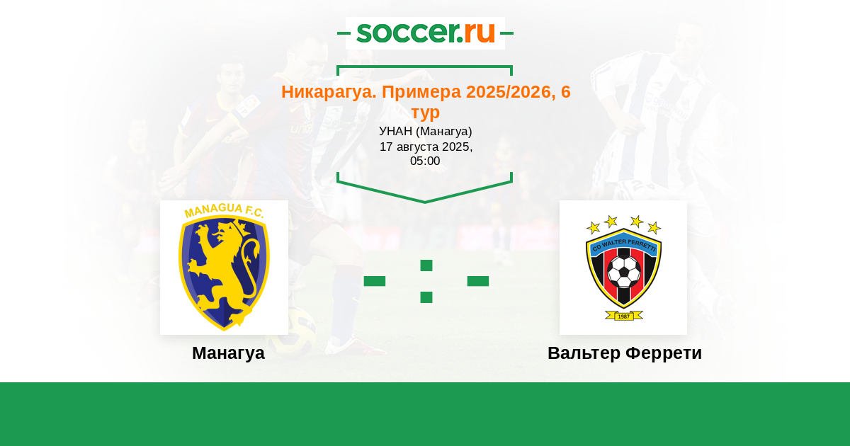 Никарагуа. Примера 25.09.2025 Манагуа Логотип футбольный клуб Манагуа 1:1 Логотип футбольный клуб Вальтер Феррети (Манагуа) Вальтер Феррети