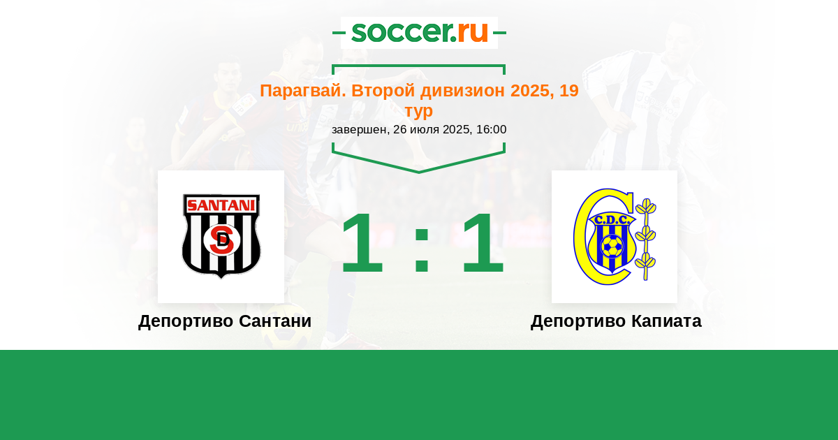 Парагвай. Второй дивизион 26.05.2021 Депортиво Капиата Логотип футбольный клуб Депортиво Капиата 1:1 Логотип футбольный клуб Депортиво Сантани (Сан Эстанислао) Депортиво Сантани