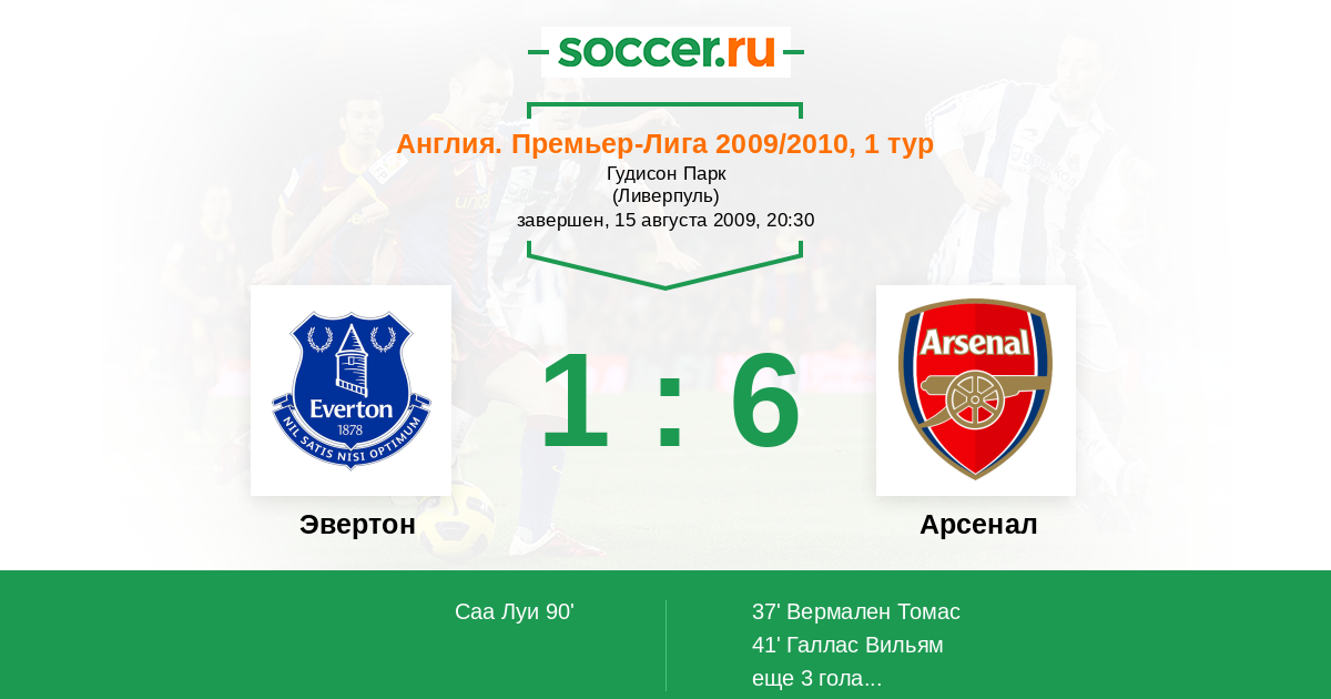 Протокол матча Эвертон против Арсенал