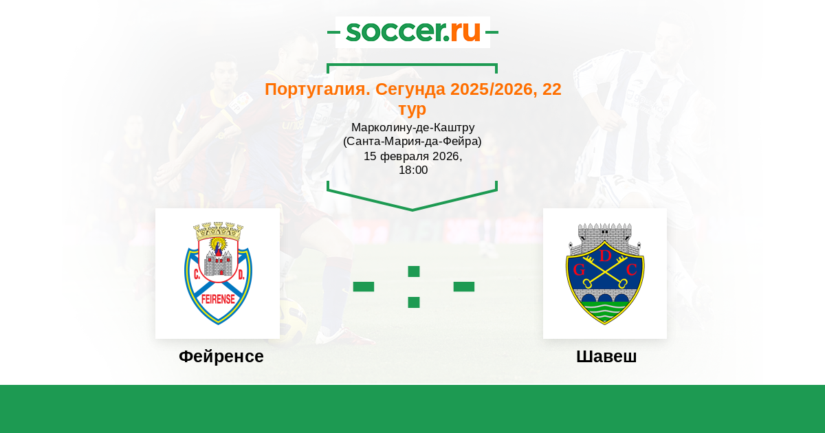 Португалия. Сегунда 22.02.2020 Шавеш Логотип футбольный клуб Шавеш 1:2 Логотип футбольный клуб Фейренсе (Санта-Мария-да-Фейра) Фейренсе