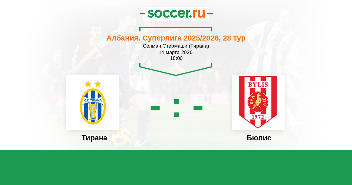 Албания. Суперлига 26.03.2025 Тирана Логотип футбольный клуб Тирана 2:2 Логотип футбольный клуб Бюлис (Баллш) Бюлис
