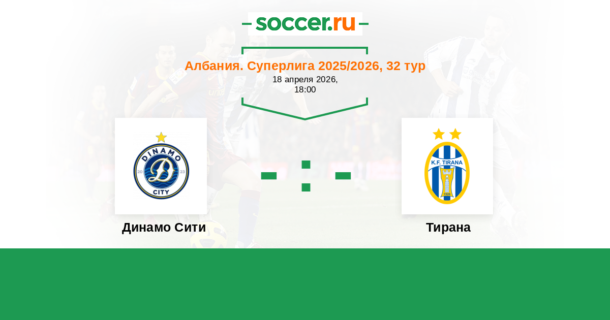 Албания. Суперлига 19.10.2024 Тирана Логотип футбольный клуб Тирана 0:0 Логотип футбольный клуб Динамо Сити (Тирана) Динамо Сити