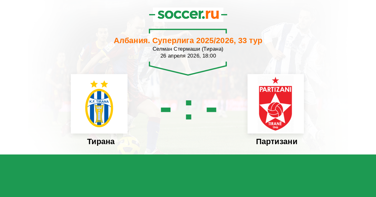 Албания. Суперлига 07.04.2025 Тирана Логотип футбольный клуб Тирана 3:0 Логотип футбольный клуб Партизани (Тирана) Партизани