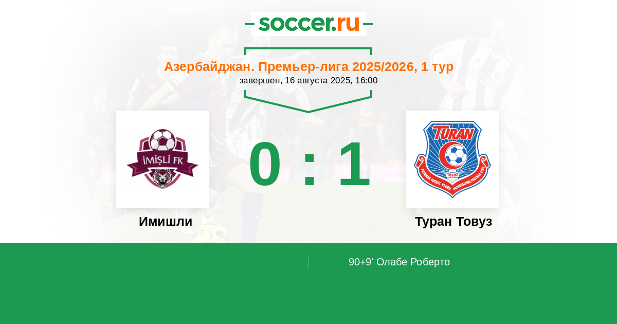Протокол матча Имишли против Туран Товуз