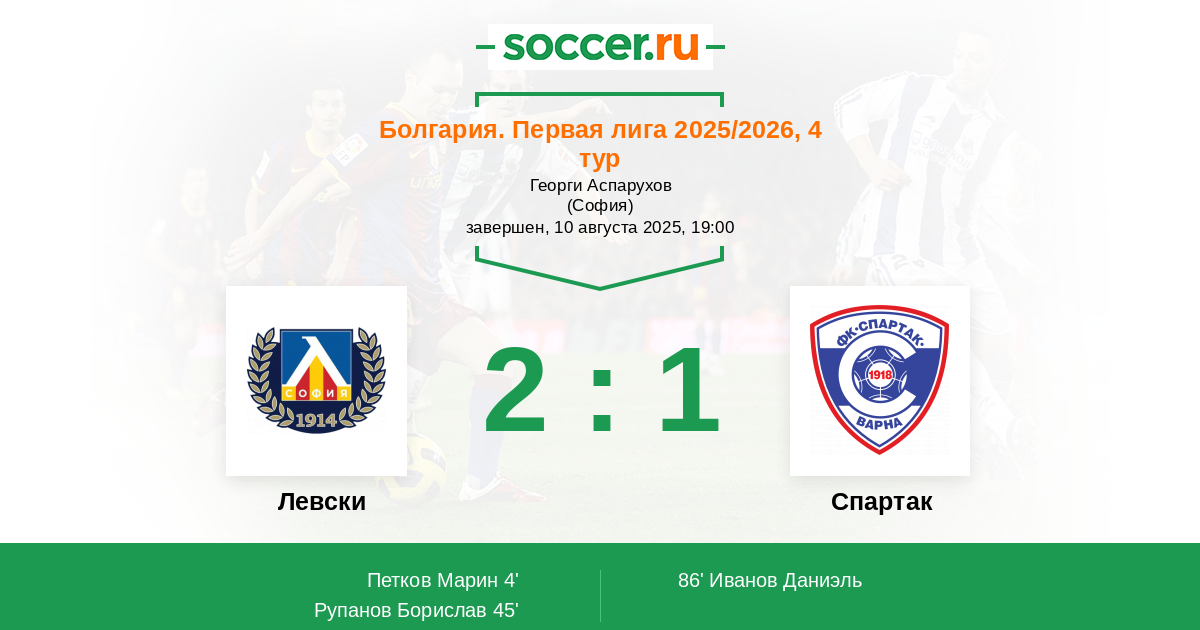 Протокол матча Левски против Спартак
