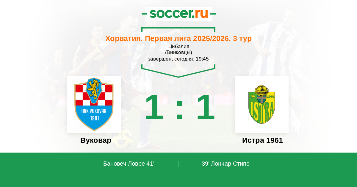 41' (1:1) Бановеч Ловре (28) (Табинас Пол (26))