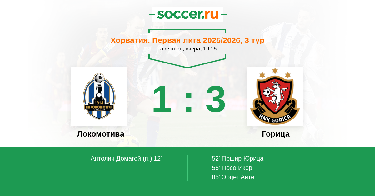 Протокол матча Локомотива против Горица