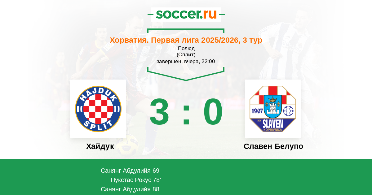 Протокол матча Хайдук против Славен Белупо