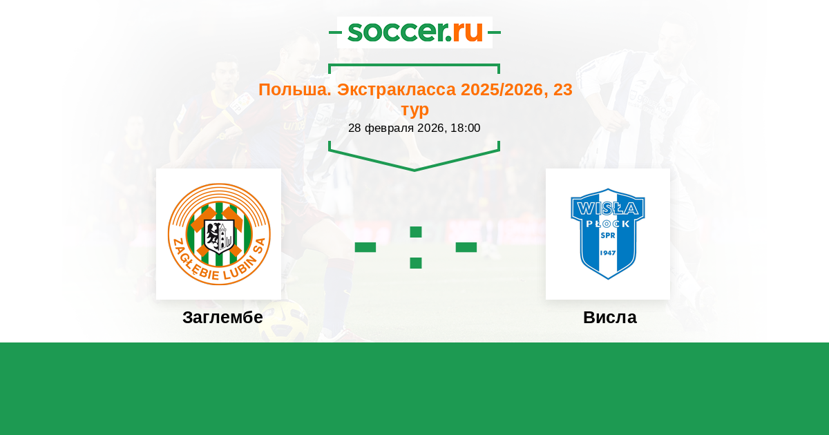Польша. Экстракласса 23.02.2020 Висла Логотип футбольный клуб Висла (Плоцк) 1:1 Логотип футбольный клуб Заглембе (Любина) Заглембе