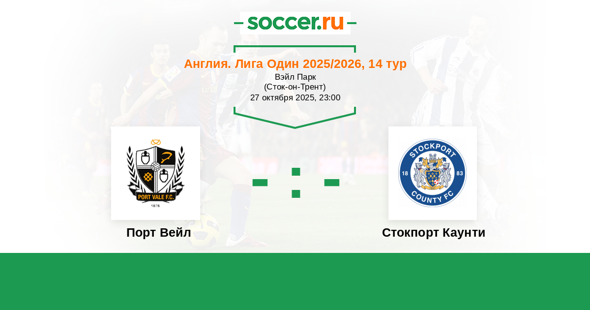 Протокол матча Порт Вейл против Стокпорт Каунти