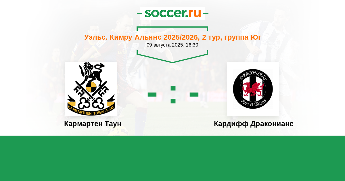 Протокол матча Кармартен Таун против Кардифф Драконианс