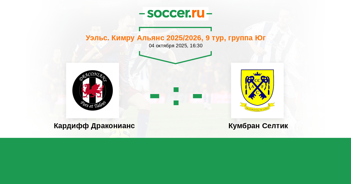 Протокол матча Кардифф Драконианс против Кумбран Селтик