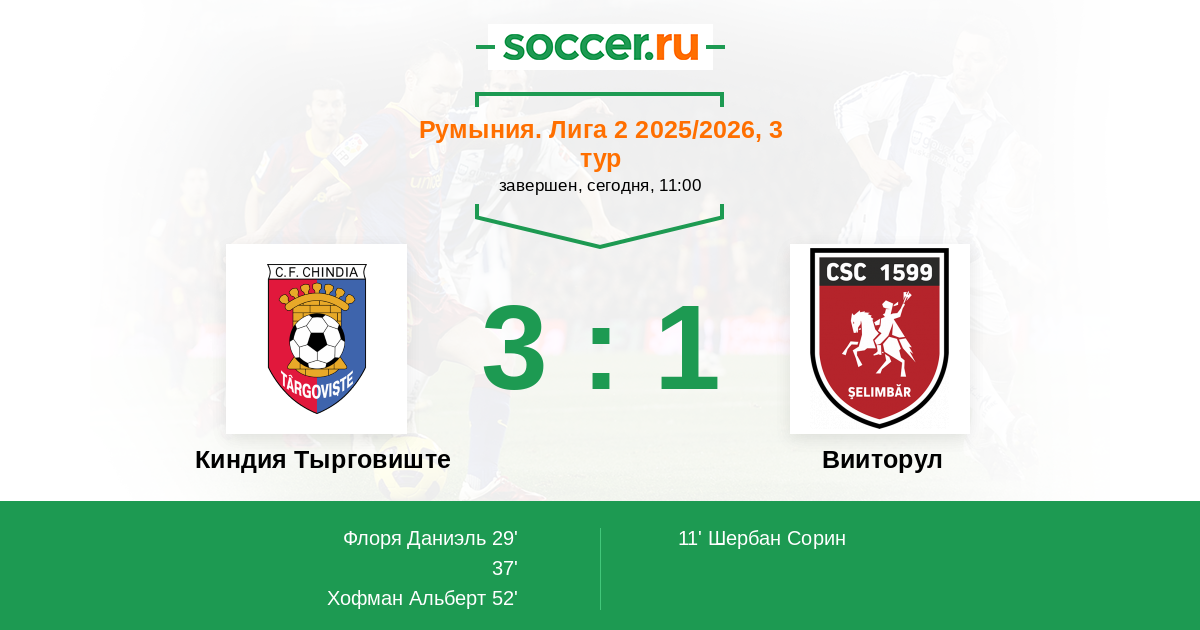 Протокол матча Киндия Тырговиште против Вииторул