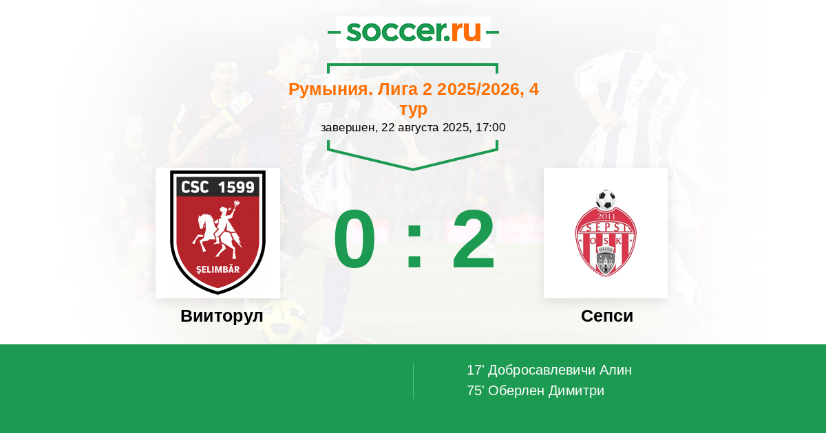 Протокол матча Вииторул против Сепси