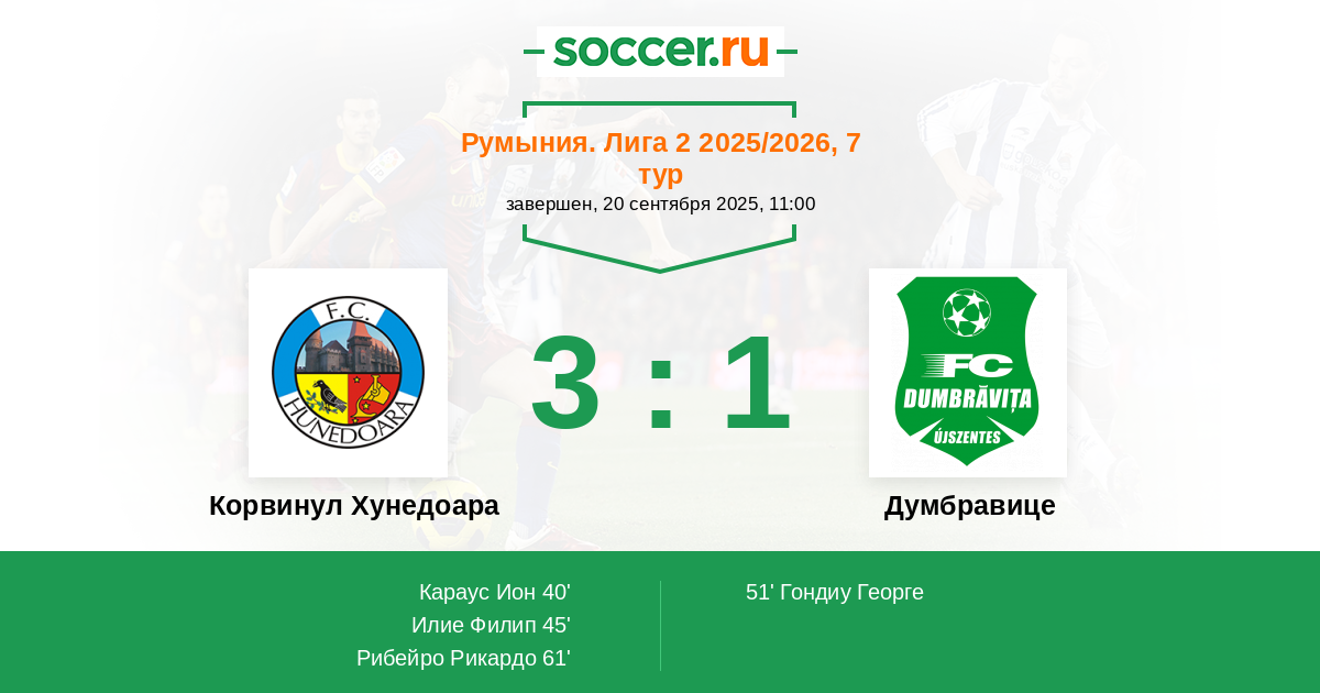 Протокол матча Корвинул Хунедоара против Думбравице