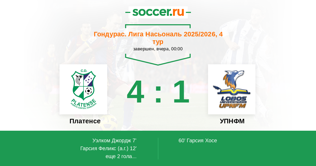 Протокол матча Платенсе против УПНФМ