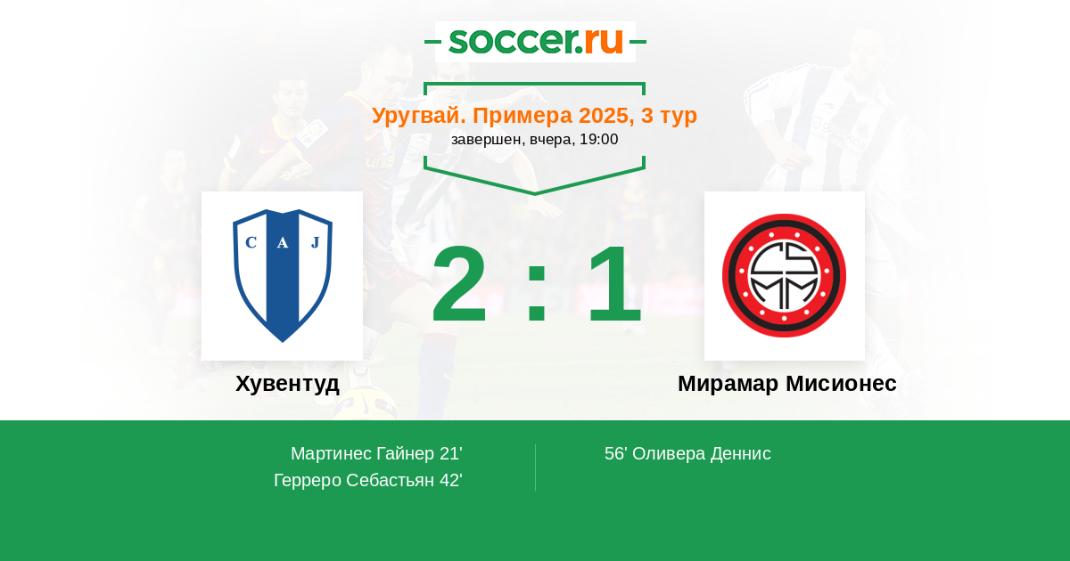 Протокол матча Хувентуд против Мирамар Мисионес